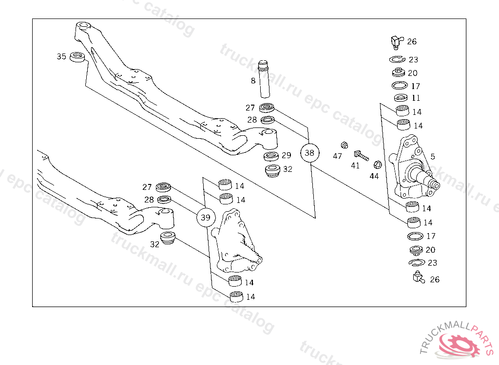 PARTS KIT STEERING KNUCKLE,L.H.D.,LEFT, R.H.D., RIGHT, DISC BRAKE,LES PIN 50 MM
