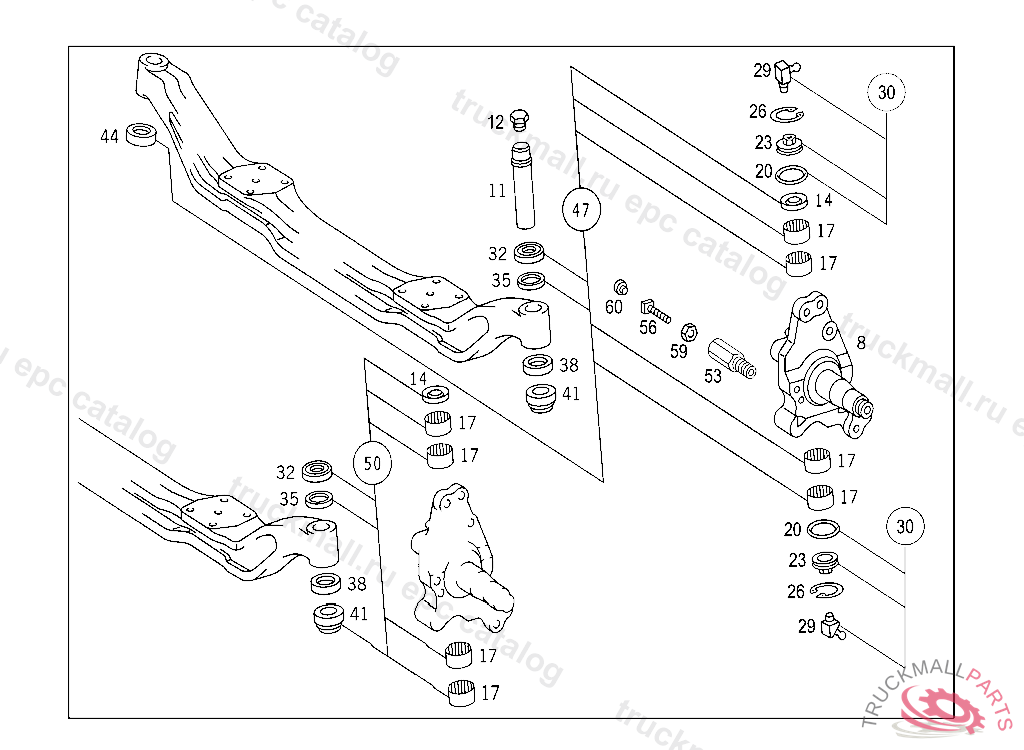 KINGPIN STEERING KNUCKLE TO FRONT AXLE BEAM, L.H.D.,LEFT, R.H.D.,RIGHT 50.30 MM