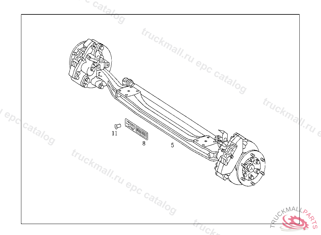FRONT AXLE , IDENTIFY MAJOR ASSEMBLY FROM VEDOC OR ORDER BY SPECIFYING THE VEHICLE IDENT NO. OR MAJOR ASSEMBLY NUMBER. DETERMINE COMPONENTS IN VEDOC WITHMAJOR ASSEMBLY IDENT. END NUMBER