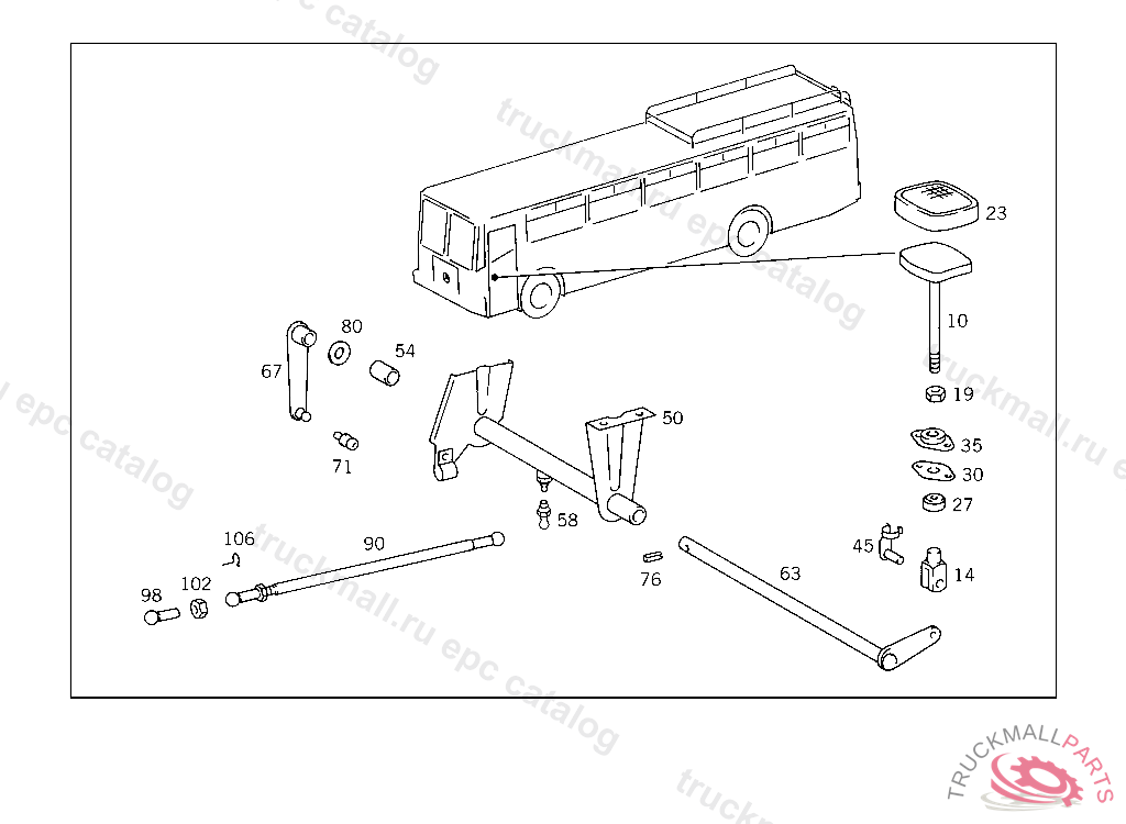 BRACKET BRAKE PEDAL THRU CAB FLOOR, 032,033,040,041,132,133,140,141 FROM ENGINE 031700 040,041,140 UP TO CHASSIS 085315 344.141 LESS SUPERCHARGING SYSTEM UP TO CHASSIS 031699 ON LK 1113 WITH CAB 814 FROM CHASSIS 12326709