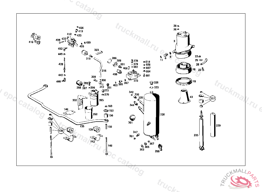 RUBBER MOUNTING AIR RESERVOIR TO CROSS MEMBER AND TO WHEELHOUSE STRUT