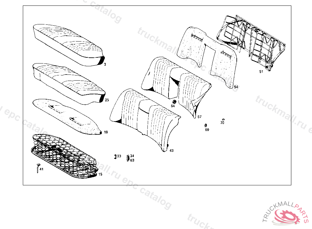 REAR SEAT CUSHION , STATE COLOR NUMBER WHEN ORDERING,AND PLEASE STATE WHETHER FRONT SEAT BACKREST SHOULD BE MADE READY FOR INSTALLATION OF HEADRES T FROM CHASSIS: 109.015 001670