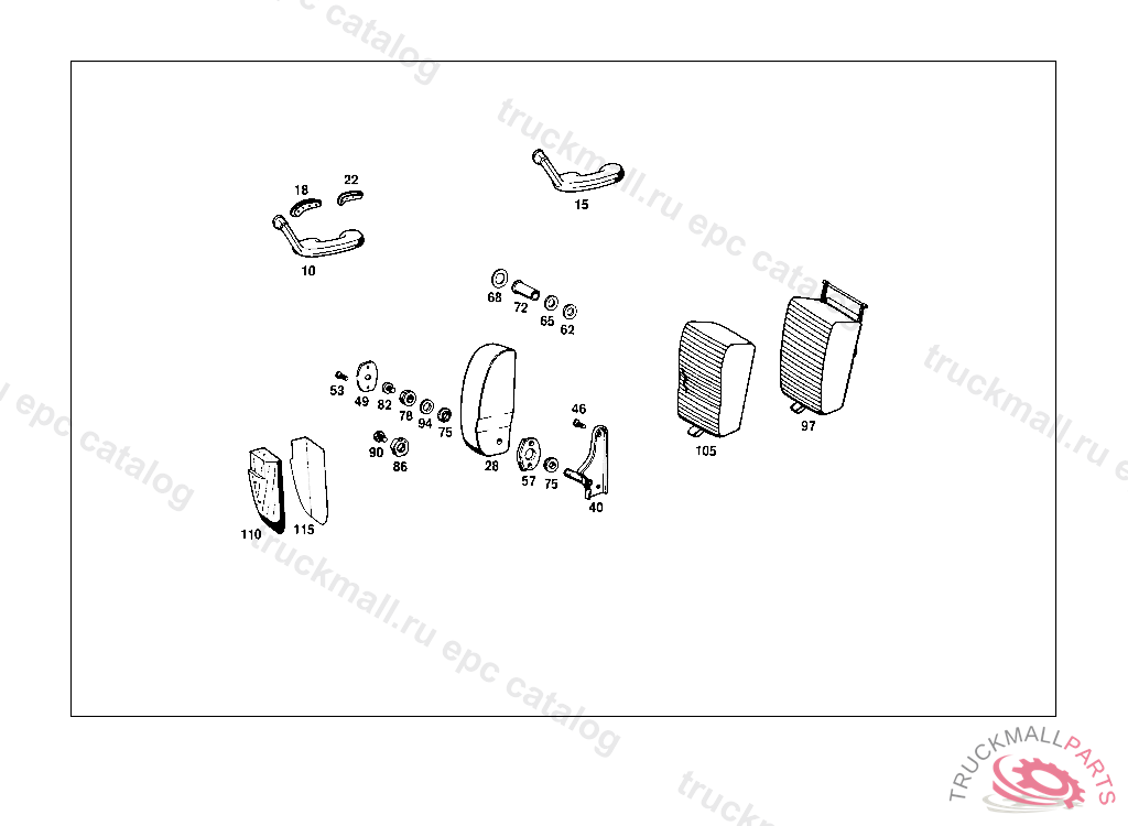 FOLDING ARMREST RIGHT, STATE COLOR NUMBER WHEN ORDERING FROM CHASSIS:108.012 054012 108.014 042607 108.015 002578 108.016,018,019,057,058 000001 ORDER ALSO RANGE OF DELIVERY OF MOUNTING MATERIAL