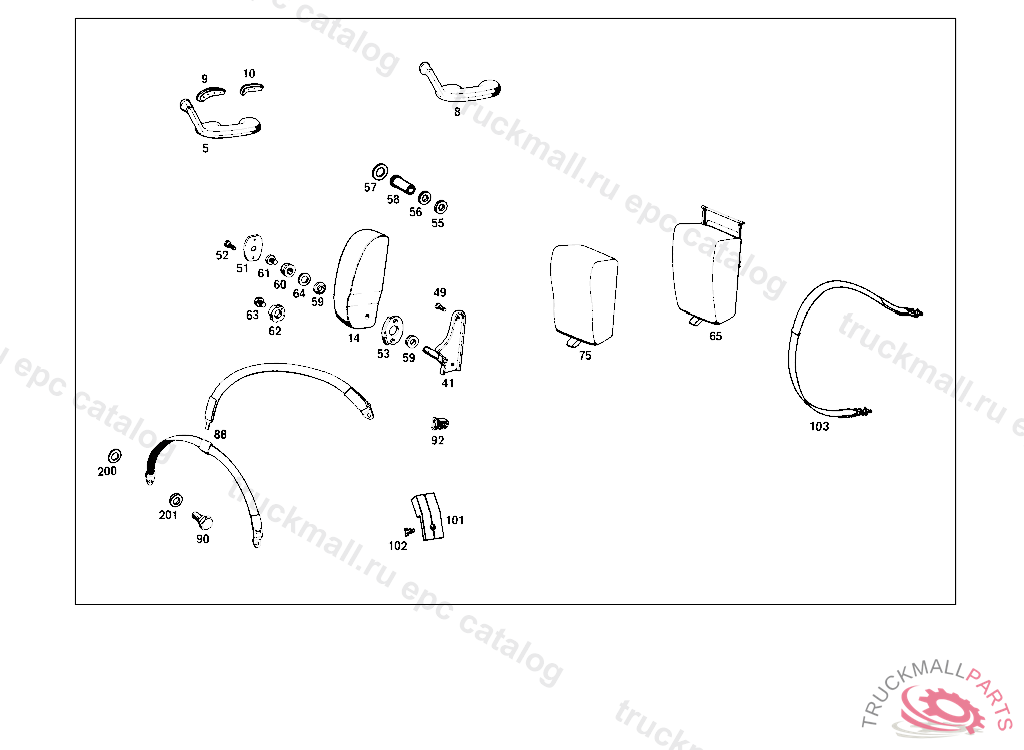FOLDING ARMREST RIGHT, STATE COLOR NUMBER WHEN ORDERING FROM CHASSIS:108.012 054012 108.014 042607 108.015 002578 108.016,018,019,057,058 000001 ORDER ALSO RANGE OF DELIVERY OF MOUNTING MATERIAL