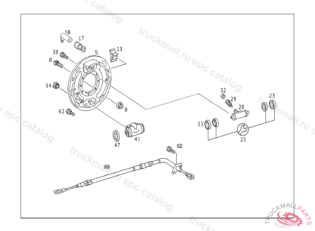SCREW REAR AXLE SHAFT AND BRAKE ANCHOR PLATE TO REAR AXLE TUBE
