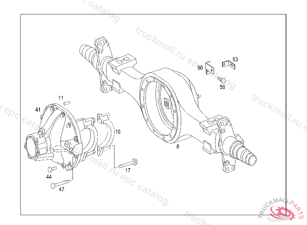 AXLE HOUSING WITH BEARING CAP, Replaced By: A9703500003