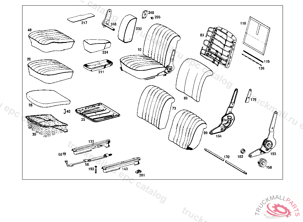 SEAT CUSHION RIGHT, STATE COLOR NUMBER WHEN ORDERING UP TO CHASSIS: 110.000,001,004,010 130557 110.100,101,104,110 225647 111.010 069692