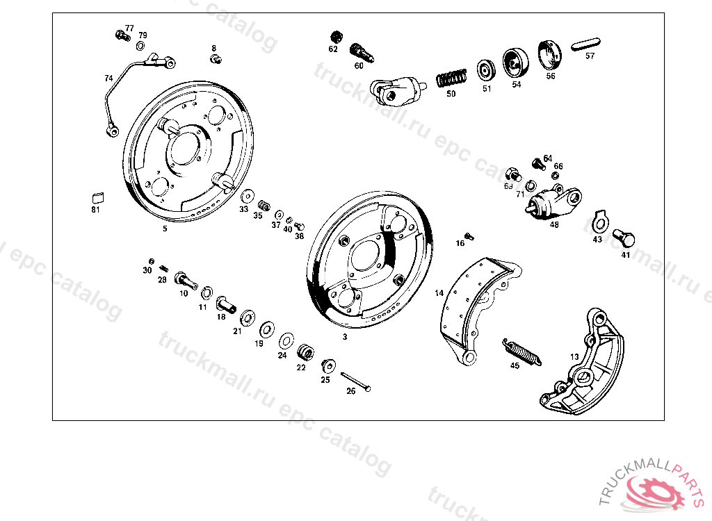 PIN FOR AUTOMATIC BRAKE ADJUSTMENT AT BRAKE SHOES, 012 UP TO CHASSIS 049855 EXCEPT FOR,SEE FOOTNOTE 54