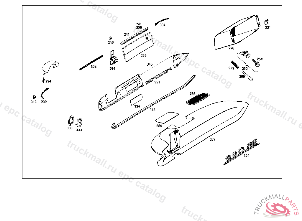 GLOVE COMPARTMENT , 010 UP TO CHASSIS 061674,012 UP TO CHASSIS 137769, Replaced By: A1106890391