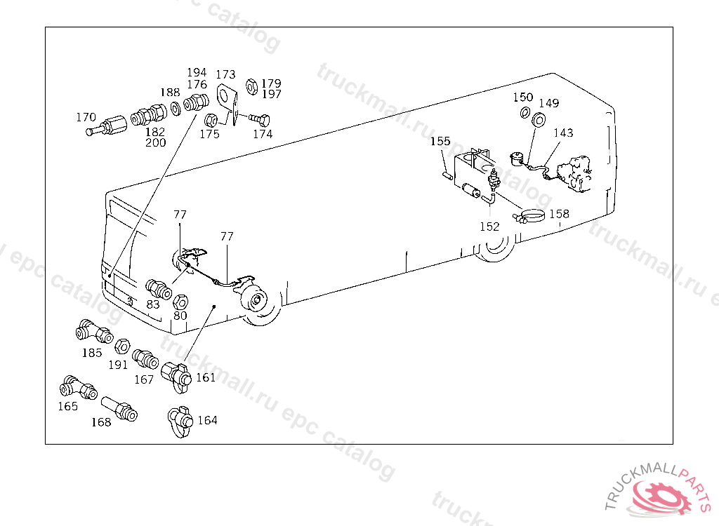 BREATHER PIPE MUFFLER TO PRESSURE REGULATOR, FROM IDENT NO.: 058023 WITH MERCEDES-BENZ BODY FROM IDENT NO.057950 LESS MERCEDES-BENZ BODY073744 MIT MB-AUFBAU073791 OHNE MB-AUFBAU
