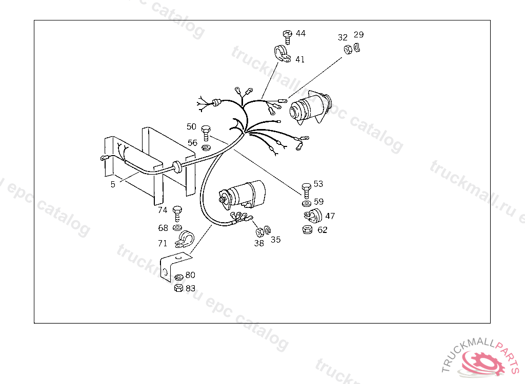 CLAMP FRAME MOUNTED CABLE HARNESS AND BATTERY CABLE TO BRACKET
