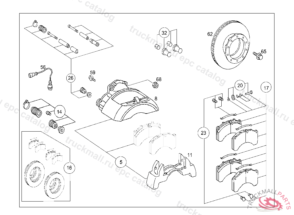 CALIPER RIGHT,WITH BRAKE BACKING PLATE AND BRAKE LININGS KNORR/TEXTAR