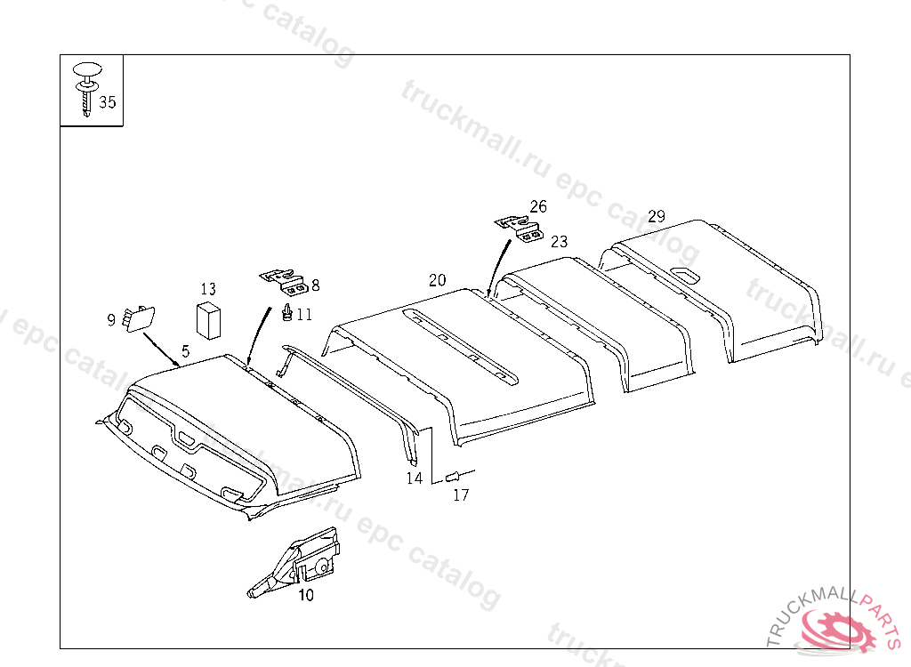 HEADLINER WITHOUT LOAD COMPARTMENT SLIDING DOOR. WITH GLASS TILTING ROOF