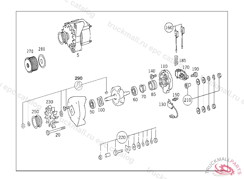 ALTERNATOR FOR BREAK-DOWN,SEE ENGINE STANDARD VERSION,MODEL: 904.904 / NL1 28V/100A, FOR COMPONENT PARTS SEE SPARE PARTS LIST