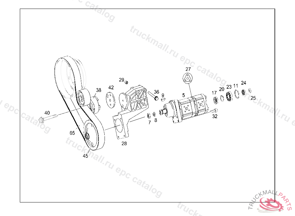 HYDRAULIC GEAR PUMP (TANDEM PUMP), WHEN EXCHANGING THE PUMP, THE BELT PULLEY MUST BE REPLACED