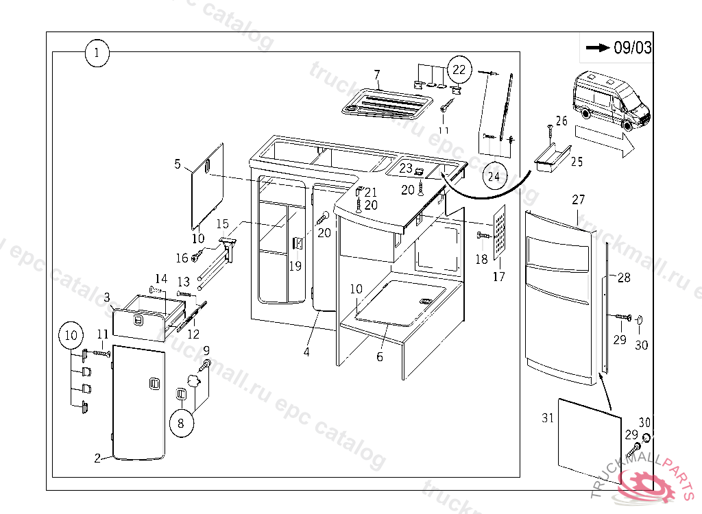 DRAWER , 40000020030903 ONLY VALID IN THE REGION OF THE FEDERAL REPUBLIC OF GERMANY. ORDER DIRECTLY VIA FAX STATING YOUR 6-DIGIT WESTFALIA CUSTOMER NUMBER & YOUR MERCEDES-BENZ ORDER NUMBER AT: WESTFALIA MOBIL GMBH, FRANZ KNOEBEL STR. 34, D-33378 RHEDA-WIEDENBRUECK, PHONE: +49-5242-15234, FAX +49-5242-15486,EMAIL- "BESTELLUNGXWESTFALIA-MOBIL.DE"