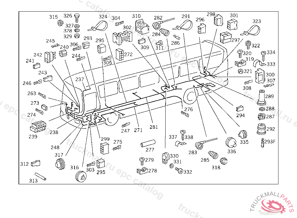 ELECTRIC CABLE MAIN CABLE,REAR END, ON VEHICLES HAVING NO MERCEDES BENZ BODY FROM IDENT NO. 056047 FOR USE WITH MERCEDES-BENZ BODY FROM IDENT NO. 056079