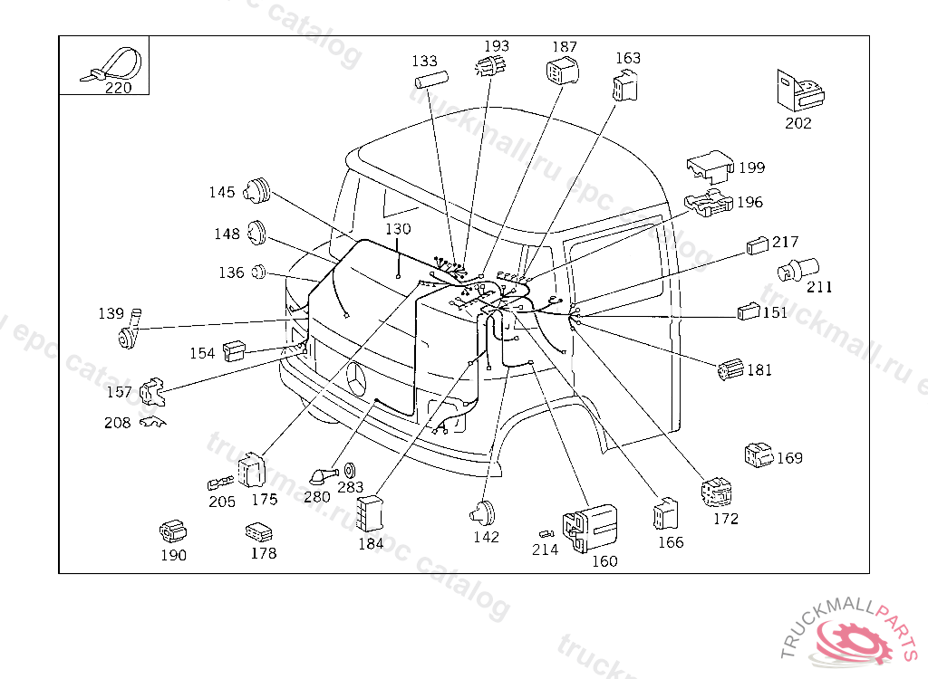 CABLE HARNESS CAB MAIN CABLE HARNESS, 309.0 FROM IDENT NO. 184087-299104,EXCEPT FOR MODEL 050 FROM IDENT NO. 192298 299104