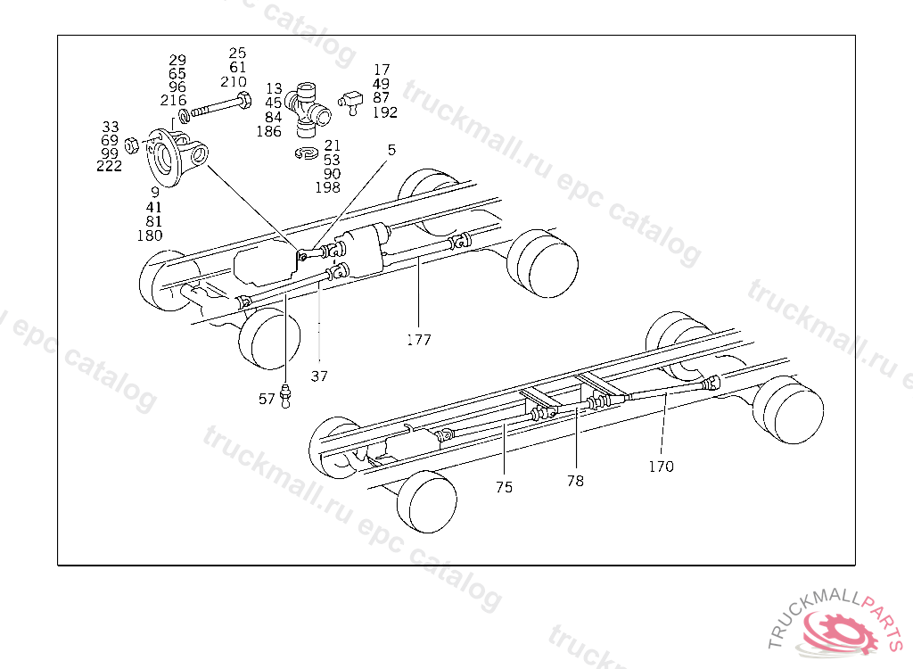 PROPELLER SHAFT FROM PROPELLER SHAFT BEARING I TO PROPELLER SHAFT BEARING II 1312 MM, PART IS ONLY OR ALSO SUPPLIED AS RECONDITIONED PART