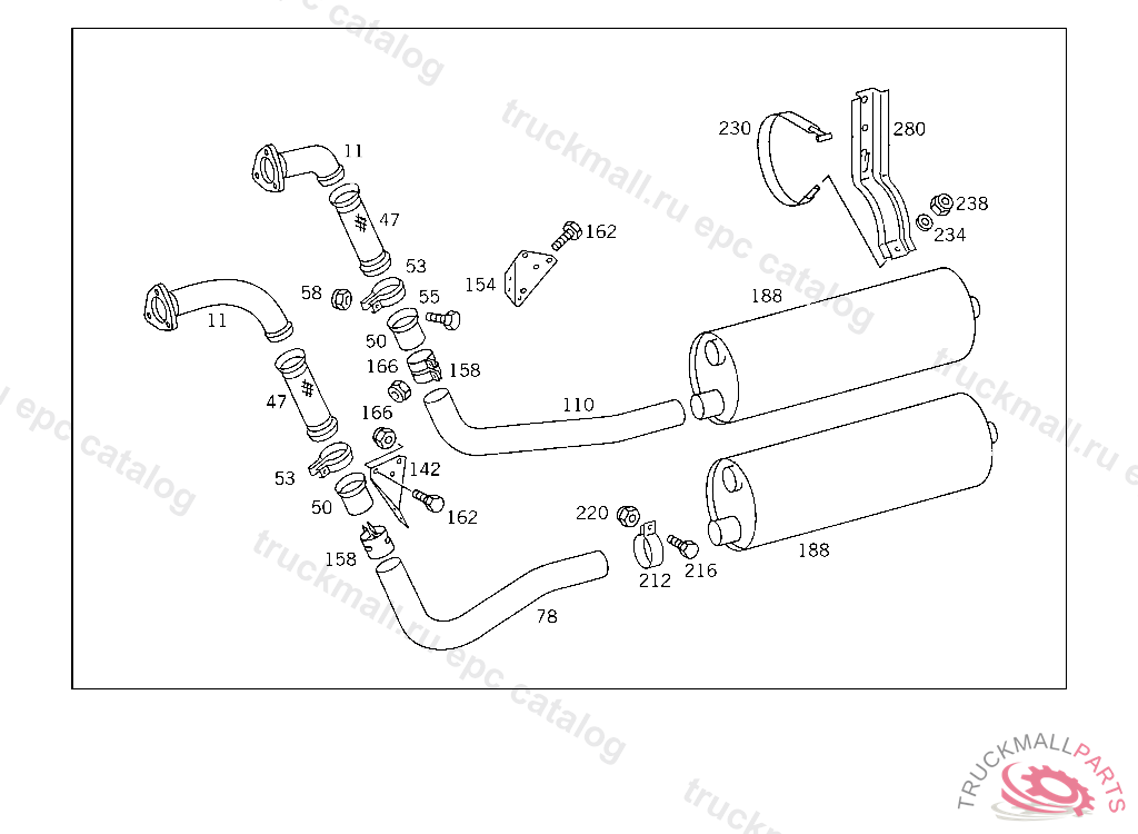 EXHAUST PIPE FRONT,REAR RIGHT PART