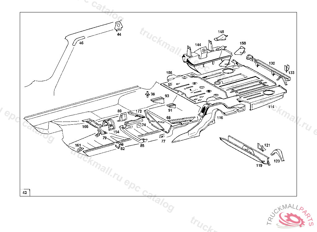 REAR END FLOOR , EXHAUST STOCK OF OLD PART NUMBERS FIRST UP TO CHASSIS: 000,002,010 125671 015 169353 100,102,103,110,112 342132, Replaced By: A1156180761