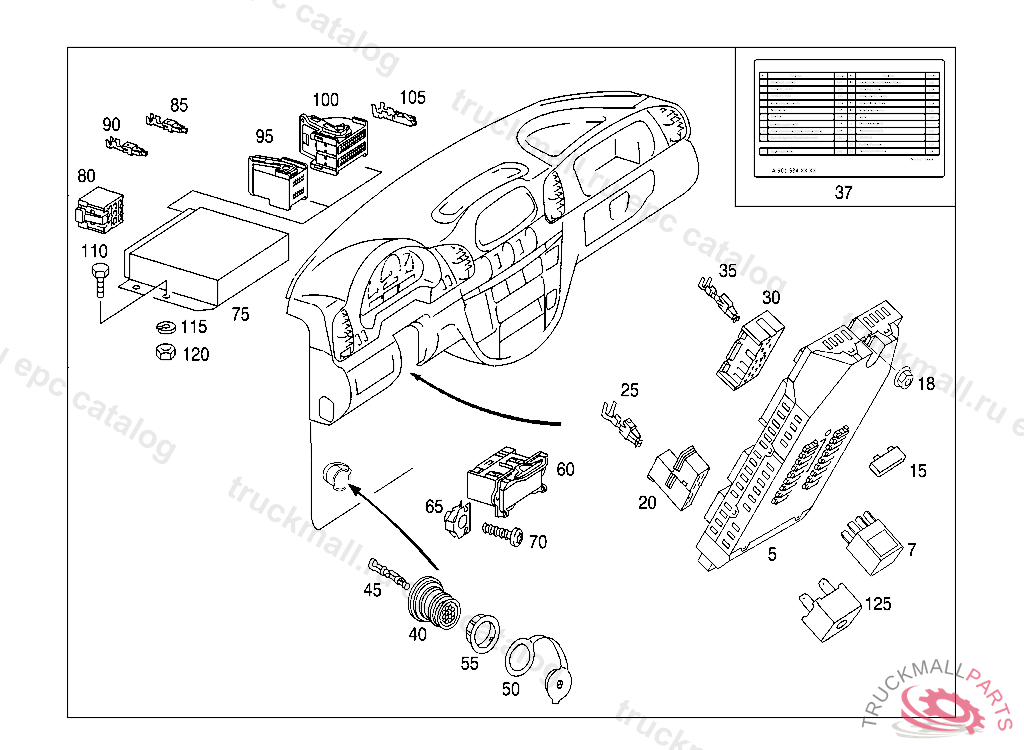 54 ELECTRICAL EQUIPMENT AND INSTRUMENTS - 076 FUSEBOX, DIAGNOSTIC SOCKET AND CONTROL UNIT ON INSTRUMENT PANEL