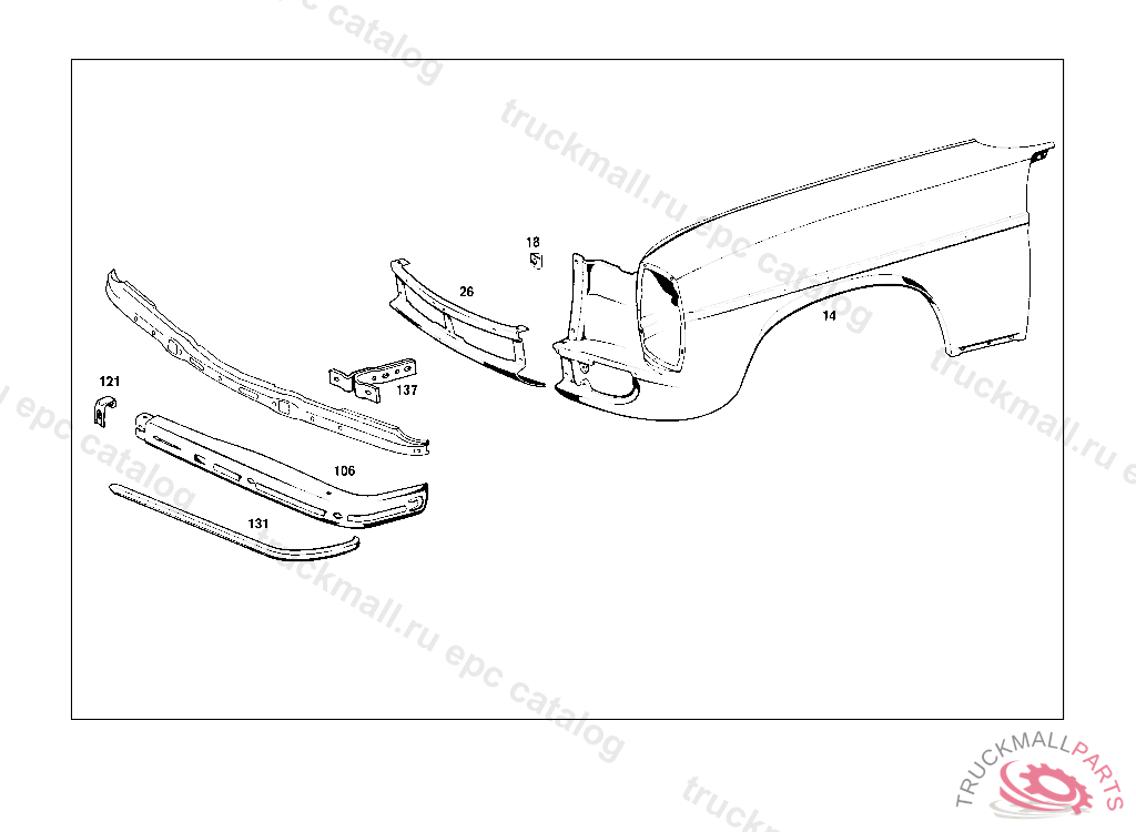 RADIATOR GRILLE SHELL , EXHAUST STOCK OF OLD PART NUMBERS FIRST UP TO CHASSIS: 000,002,010 087027 015 101864 100,102,103,110,112 220599 115 109174, Replaced By: A1158880315