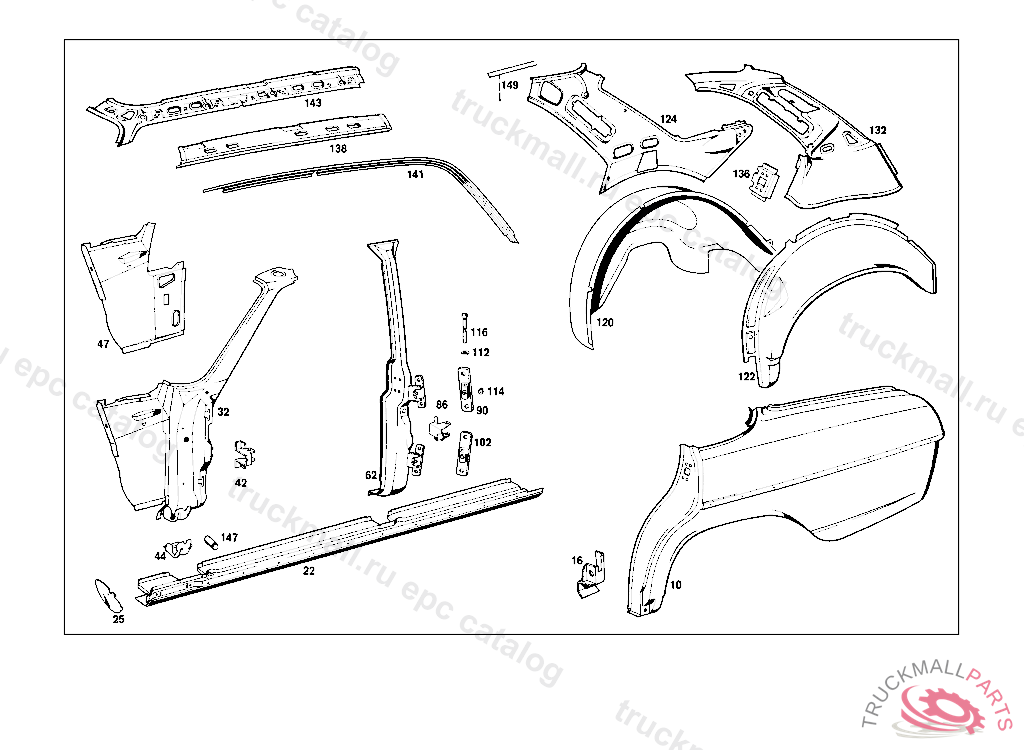PILLAR LEFT, FROM CHASSIS: 015 200001 100,102,103,110,112 400001 115 200001 005,017,105,107,108,117,119 000001