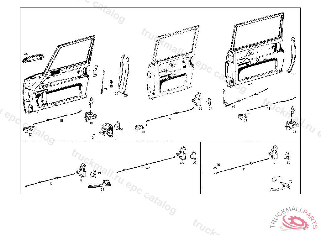 PANELLING RIGHT,LESS INTERIOR LOCKING MECHANISM, UP TO CHASSIS: 108.012 10/50,12/52 068089 108.012 20/50,22/62 067637