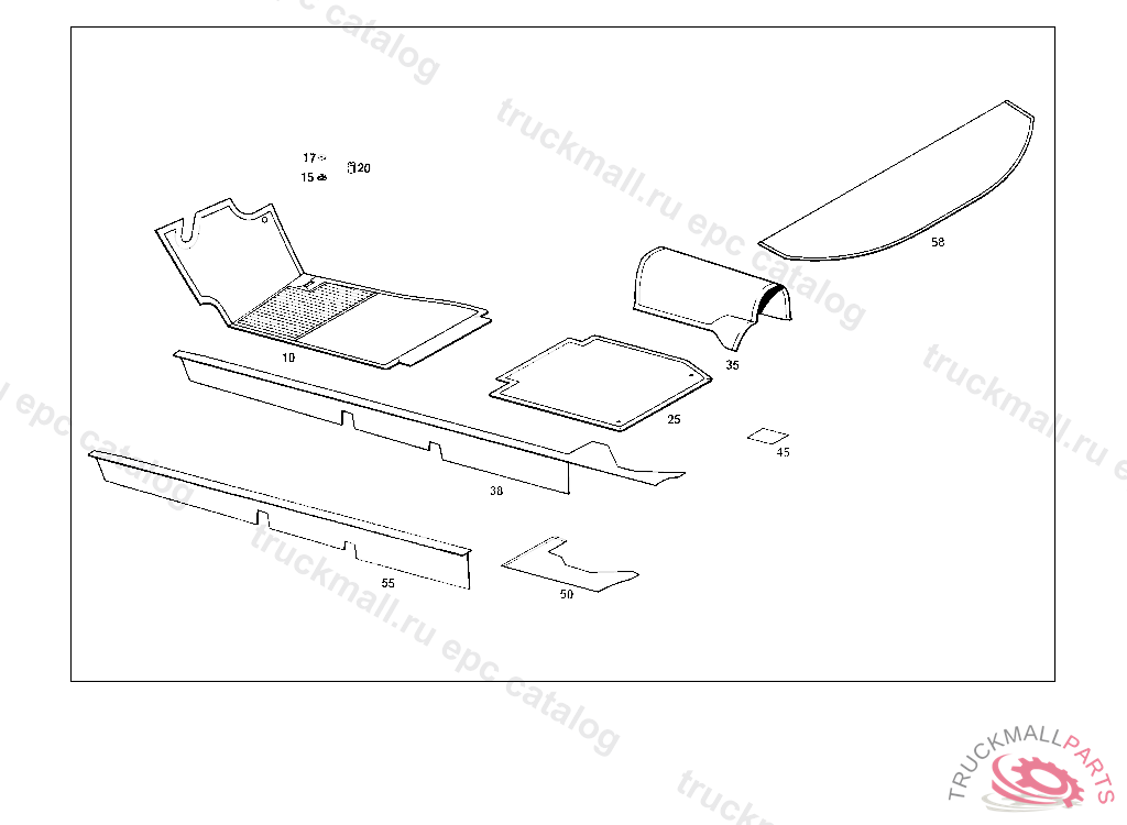 LINING RIGHT ENTRANCE, STATE COLOR NUMBER WHEN ORDERING UP TO CHASSIS: 114.010 029204 114.015 017653 115.010 018740 115.015 015922 115.110 039936 115.115 017970
