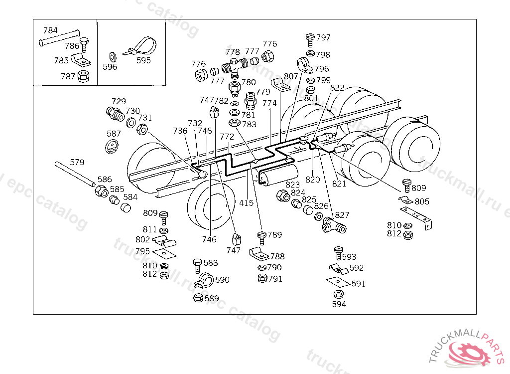 LINE FROM HAND BRAKE VALVE TO COMPRESSED AIR HOSE,684145