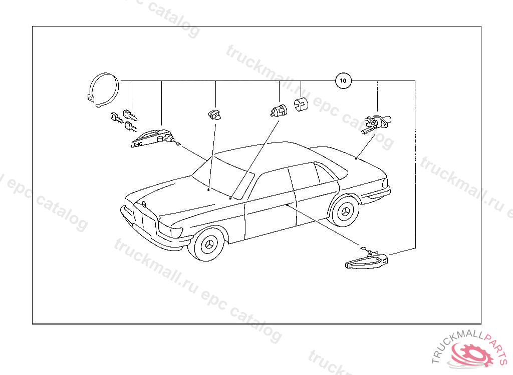 OUTFIT (LOCK,KEY,HANDLE) , FROM CHASSIS 116.020 110397 116.024,025 127927 116.028,029 049498 116.032 086637