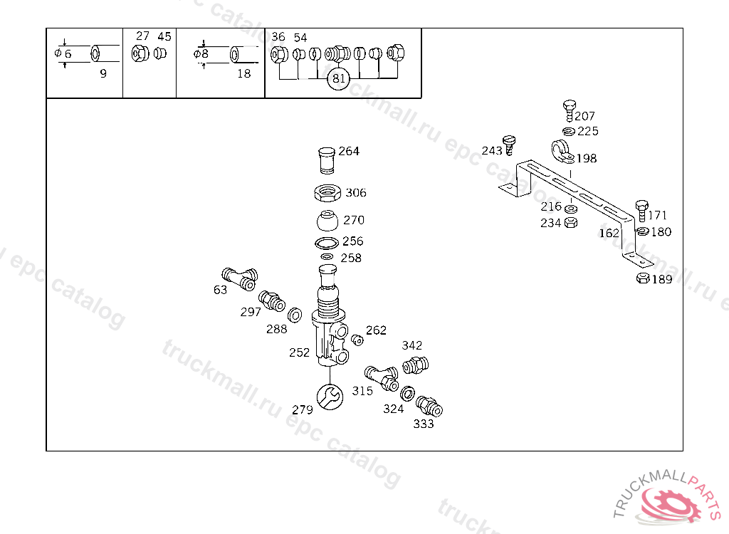 LOCK WASHER COMPRESSED AIR LINE TO BRACKET AT SUBSTRUCTURE, USED WITH HYDRAULIC BRAKE UP TO CHASSIS 209475 EXCEPT FOR 209273,209446,209461,209465,209471,209474.
