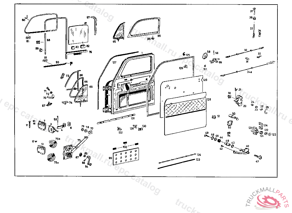 DRIVER'S DOOR, LEFT SPECIAL REQUEST, DEFLECTOR WINDOW DESIGN WITH INTERIOR PUSH BUTTON WITH WINDOWAND METAL FITTINGS WITHOUT SEALING RUBBER