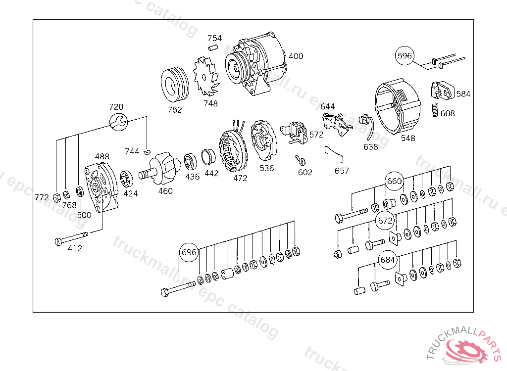 ALTERNATOR WITH PULLEY, LESS REGULATOR 12 V/55 A