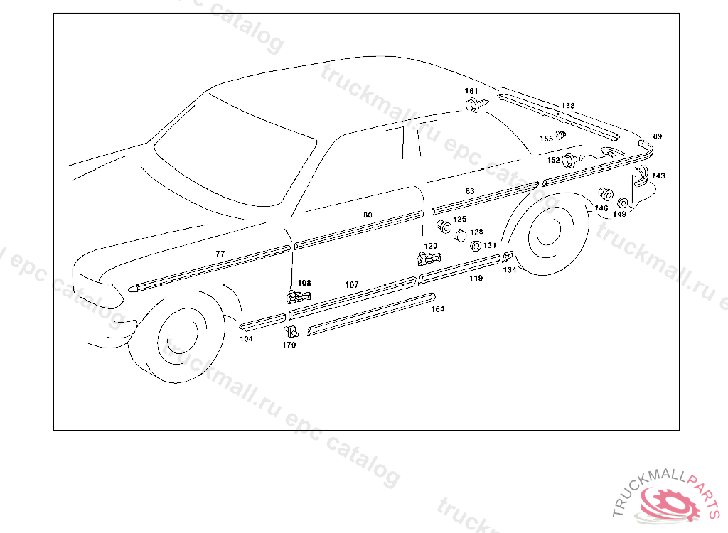 NUT BOTTOM GARNISH MOULDING TO REAR DOOR, REAR, 000 074246 003 036142 EXCEPT FOR 035979,036029 007 033468 102 053529 103 053849 105 068456 ALSO INSTALLED ON 068265,068282