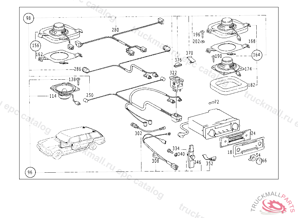 RADIO ACCESSORIES REAR LOUDSPEAKER, THE FOLLOWING PARTS ARE NOT INCLUDED IN RANGE OF DELIVERY: VCOVERING IN HOUSING