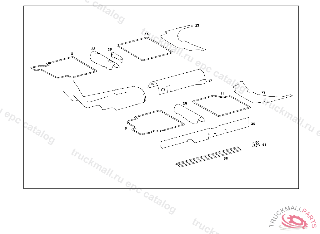 LINING LEFT,CROSS MEMBER BELOW REAR SEAT BENCH, UP TO CHASSIS NEW EQUIPMENT 9/79 033 063890 FEDERAL EXCEPT FOR 055239,061638,061696,062935,062964. 033 063873 CALIFORNIA EXCEPT FOR 063285,063290 123 149291 FEDERAL EXCEPT FOR 142621,143256,143516,144274,144277,144302,144557,145496,146832,147929,149171,149201,149219. 123 149278 CALIFORNIA EXCEPT FOR 135619,144819 130 164520 FEDERAL EXCEPT FOR 158847,159667,161729,161879,164216,164226,164273,164333,164372,164387,164410. 130 164506 CALIFORNIA EXCEPT FOR 138827,160568,161559,164179,164227,164306,164312,164324,164384,164391,164409,164482. NO.9029 INO.5052 INO.8171 INO.8233 INO.8234 INO.6063 I