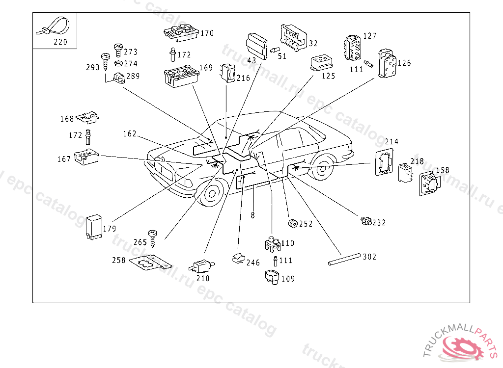 ELECTRIC CABLE FROM SWITCH CLUSTER TO FRONT AND REAR DOOR WINDOW REGULATOR MOTORS, 023 066333 033 030919 123 047598 130 060954