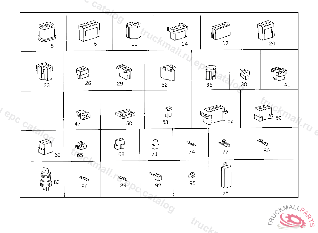PIN BUSHING HOUSING. PLUG HOUSING FROM CHASSIS/CAB CONNECTION POINT TO TACHOGRAPH