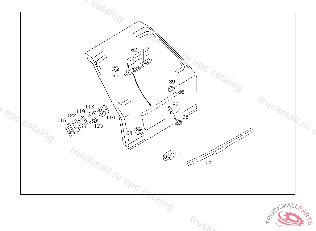 SHEET METAL SCREW MOULDING TYPE HANDLE TO REAR PANEL DOOR