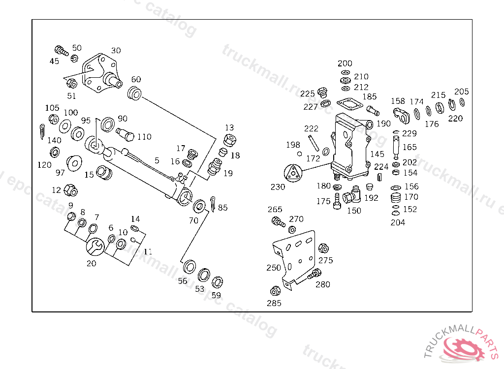 BEARING BRACKET HYDRAULIC CYLINDER, MODEL 415/416/417 FOR USE WITH SHORT CAB MERCEDES BENZ 415 5 014668 416 5 000515 417 4 972023
