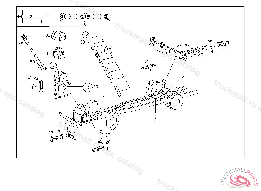 REPAIR KITTO 001 430 58 81/59 81,WABCO, WITH HAND BRAKE VALVE ON ENGINE TUNNEL, FROM IDENT NO. SEE MF 26032