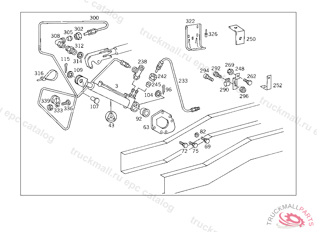 BEARING BRACKET HYDRAULIC CYLINDER, MODEL 416/417 FOR USE WITH MEDIUM-LENGTH MERCEDES-BENZ CAB