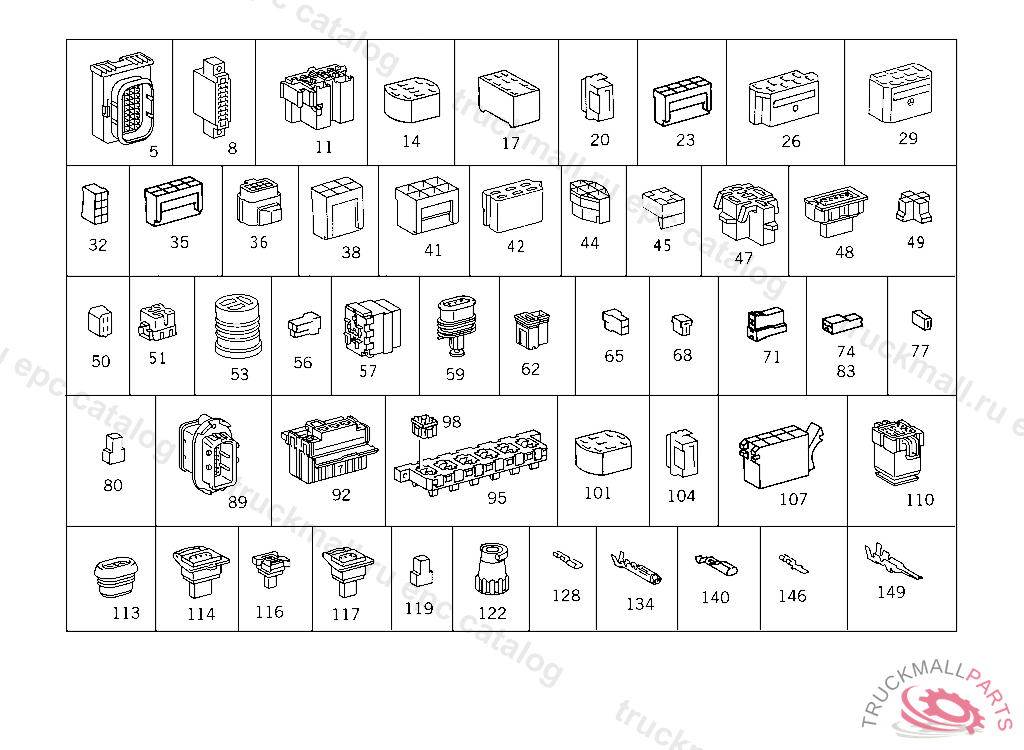 PIN BUSHING HOUSING. PLUG HOUSING FROM CHASSIS/CAB CONNECTION POINT TO TACHOGRAPH