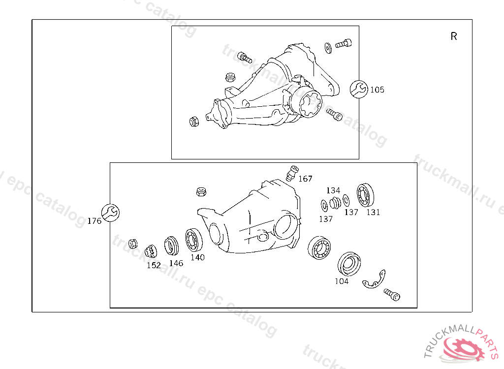 SEAL RING AXLE SHAFT, REAR AXLE HOUSING WITH DIFFERENTIAL AND WITH SIDE BEARING CAPS 003 103238 007 087550 086 007105 093 008991 102,103 240182 105 231728 183 015394 190 021956 193 002092 200 027294 280 000776 283 003631