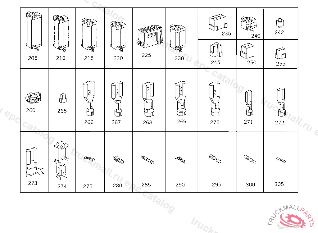PIN BUSHING HOUSING. PLUG HOUSING FROM CHASSIS/CAB CONNECTION POINT TO TACHOGRAPH