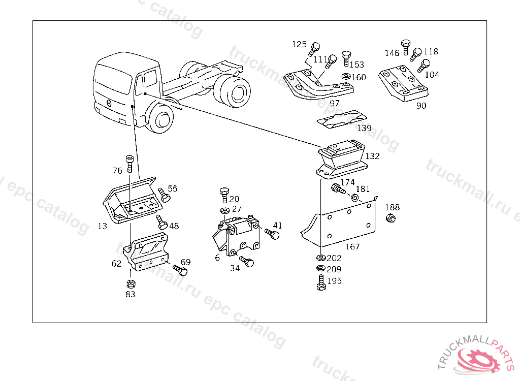 SCREW RUBBER MOUNTING TO FRAME M 16 X 30, FOR USE WITH MERCEDES-BENZ CAB