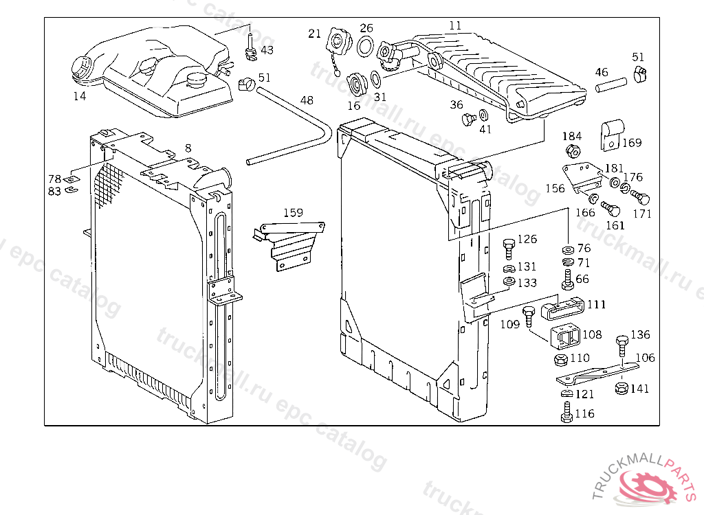 RADIATOR , FIRST EXHAUST STOCK OF OLD PARTS UP TO IDENT NO. 5 752618, Replaced By: A6555002103