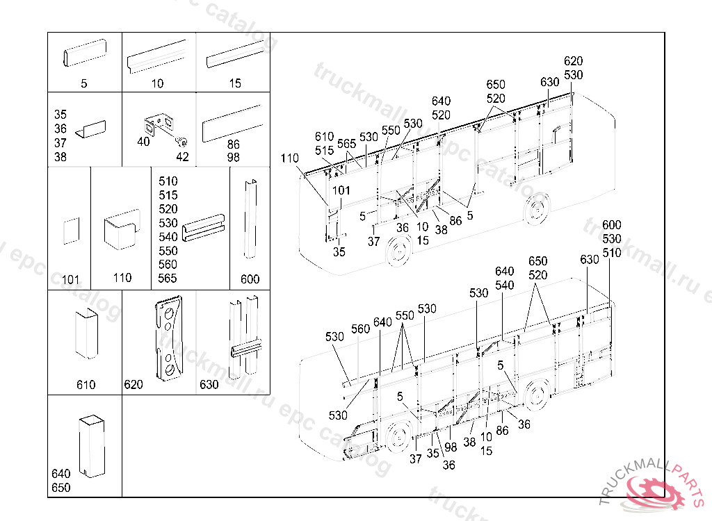 RAIL RIGHT 105 MM, TO BE ADAPTED DURING ASSEMBLY